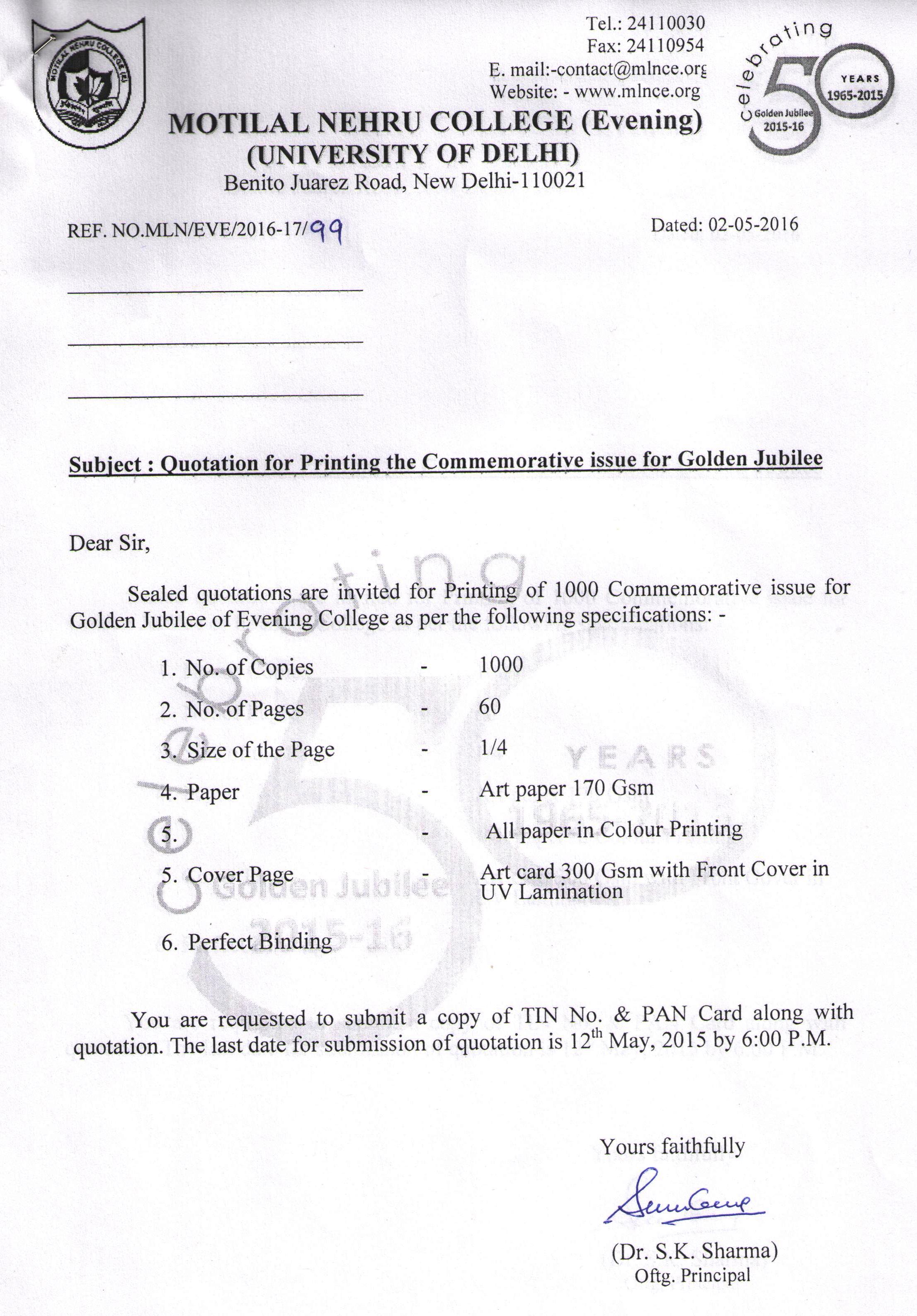 Inviting Quotations Regarding Printing Commemorative issue for Golden Jubilee