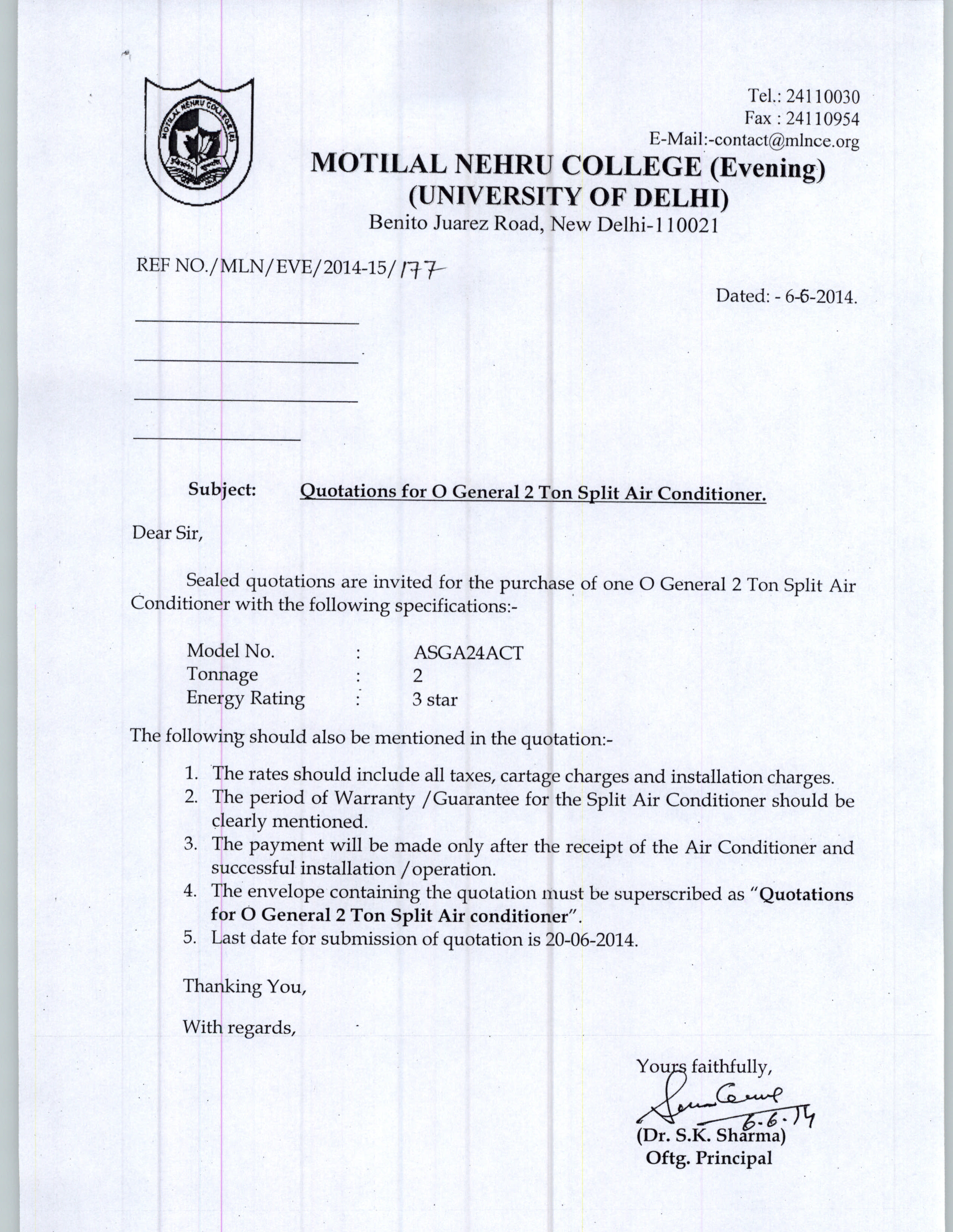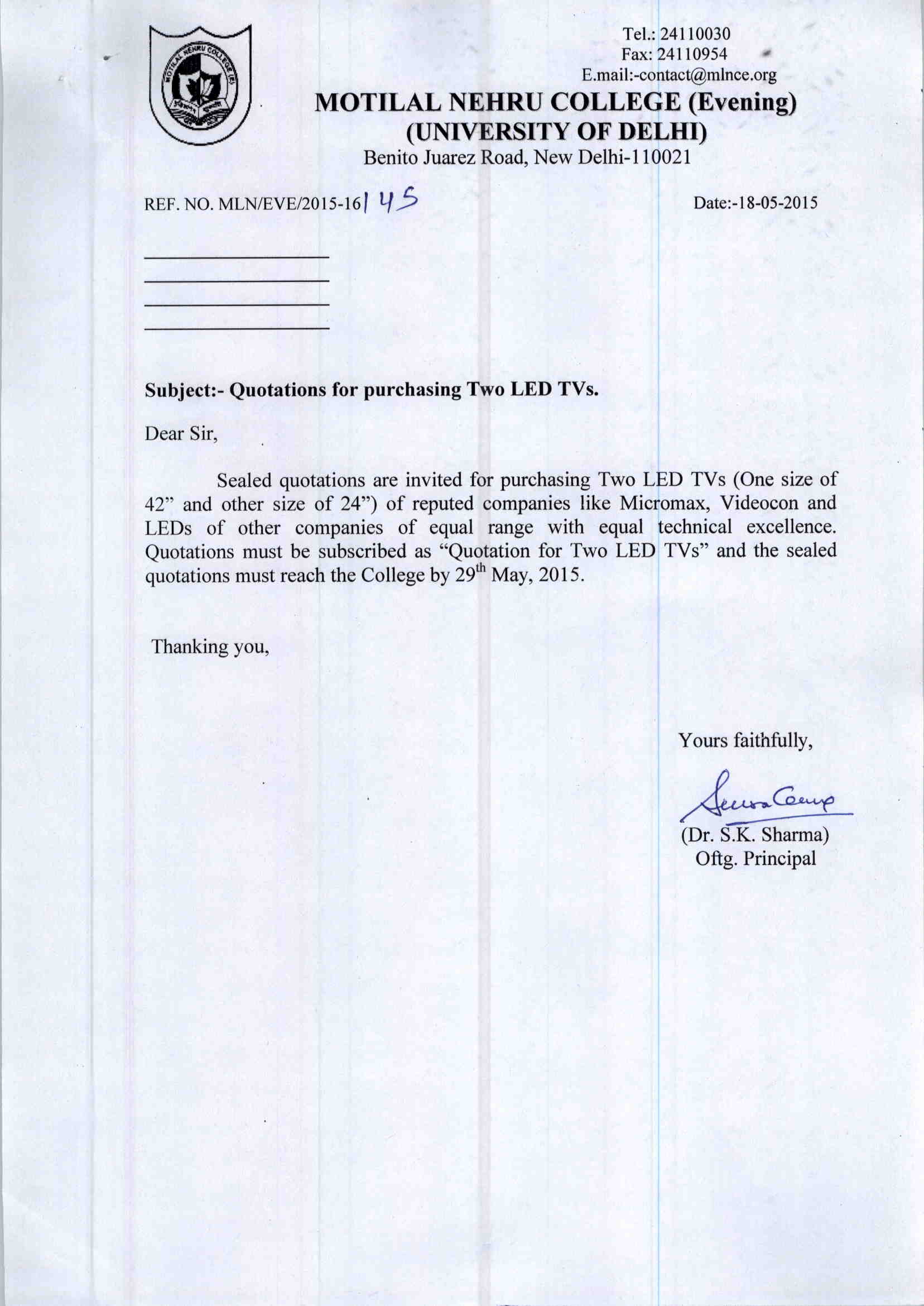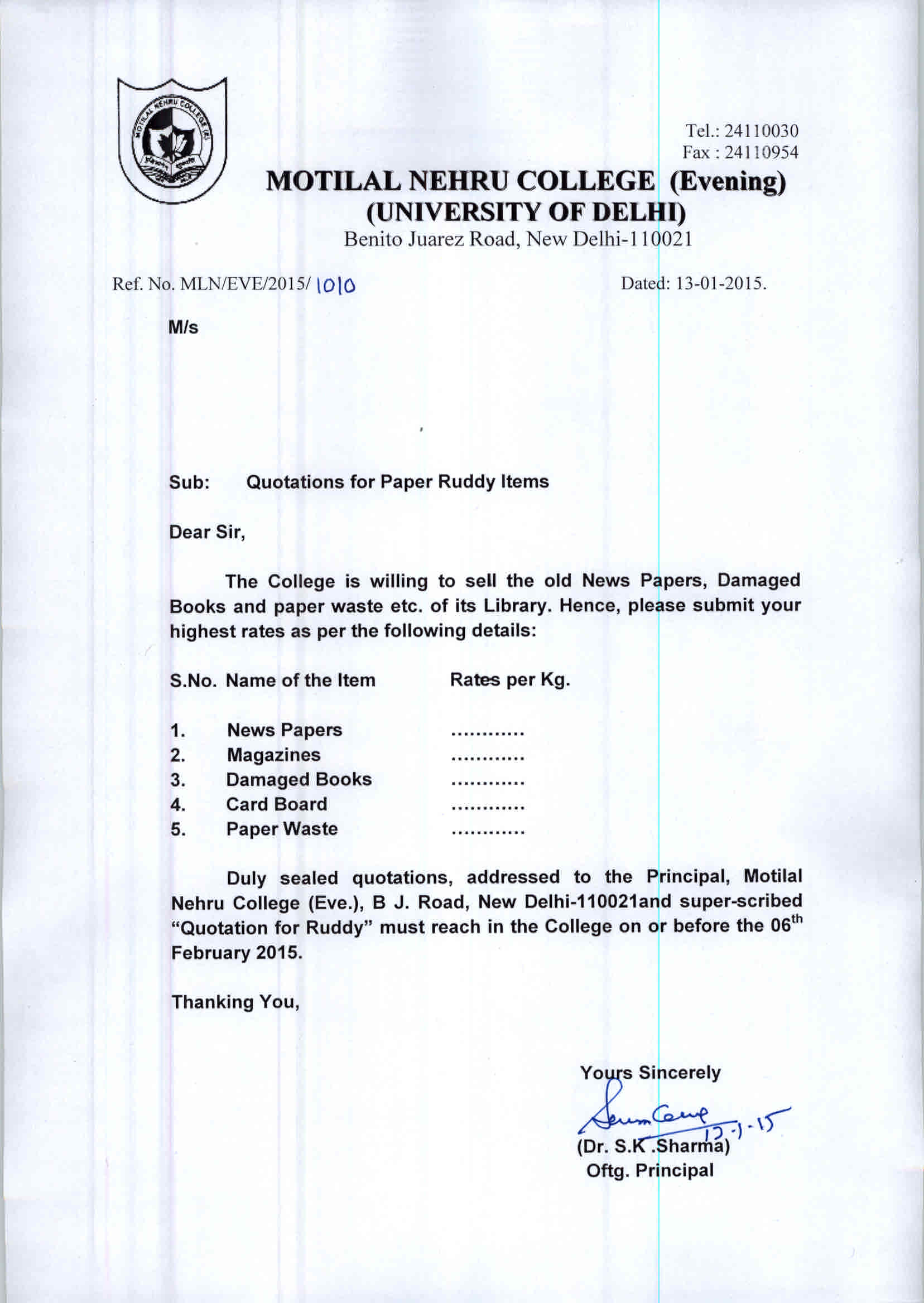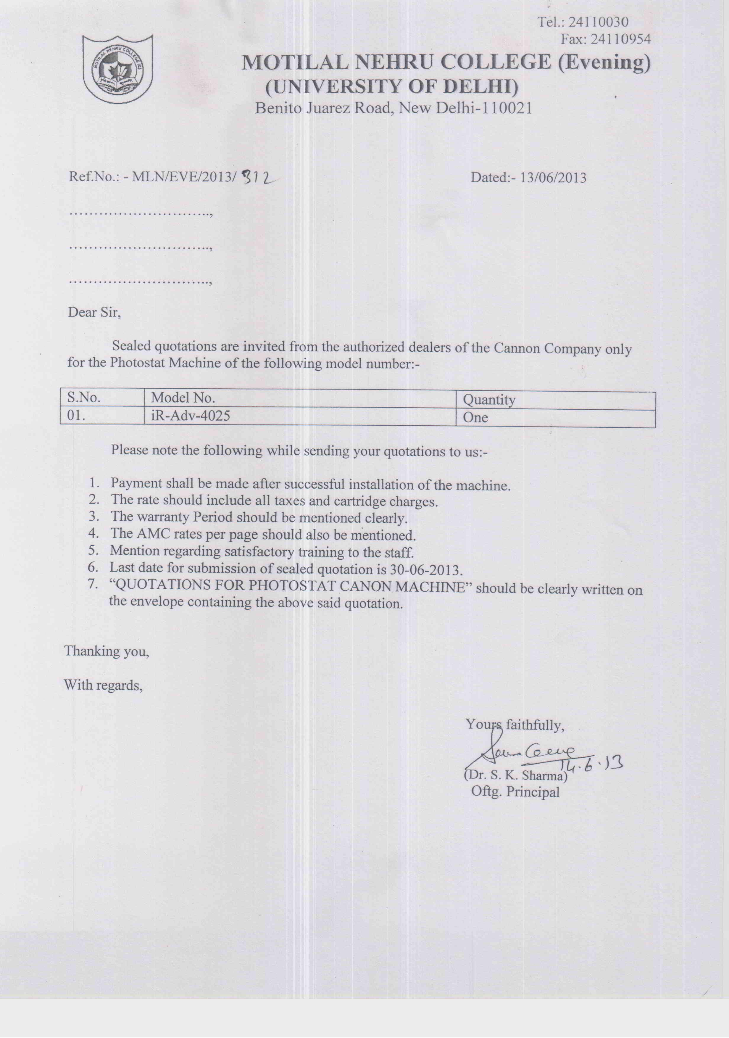 Tender Notice regarding Offset Printing of College Magazine 2012-13.