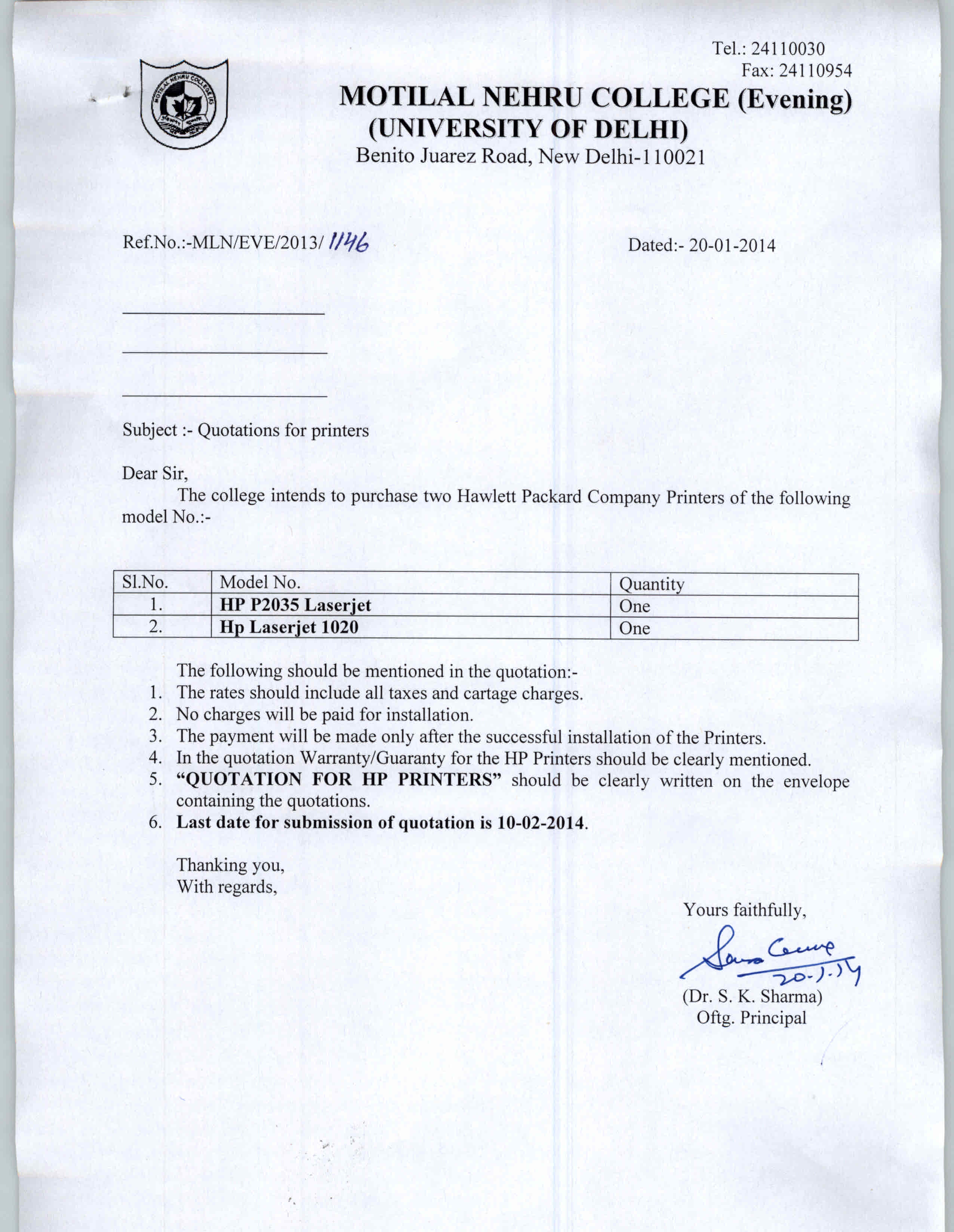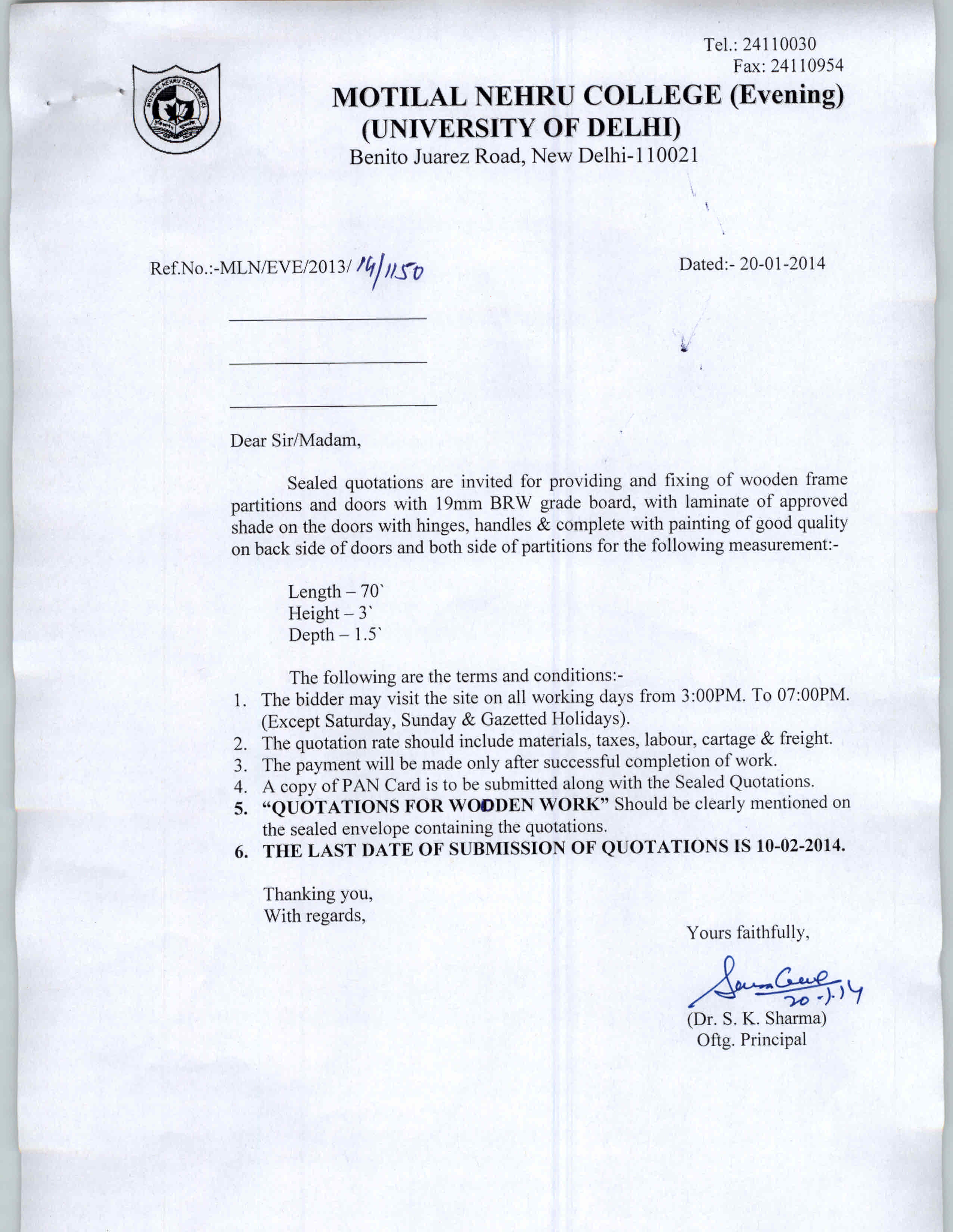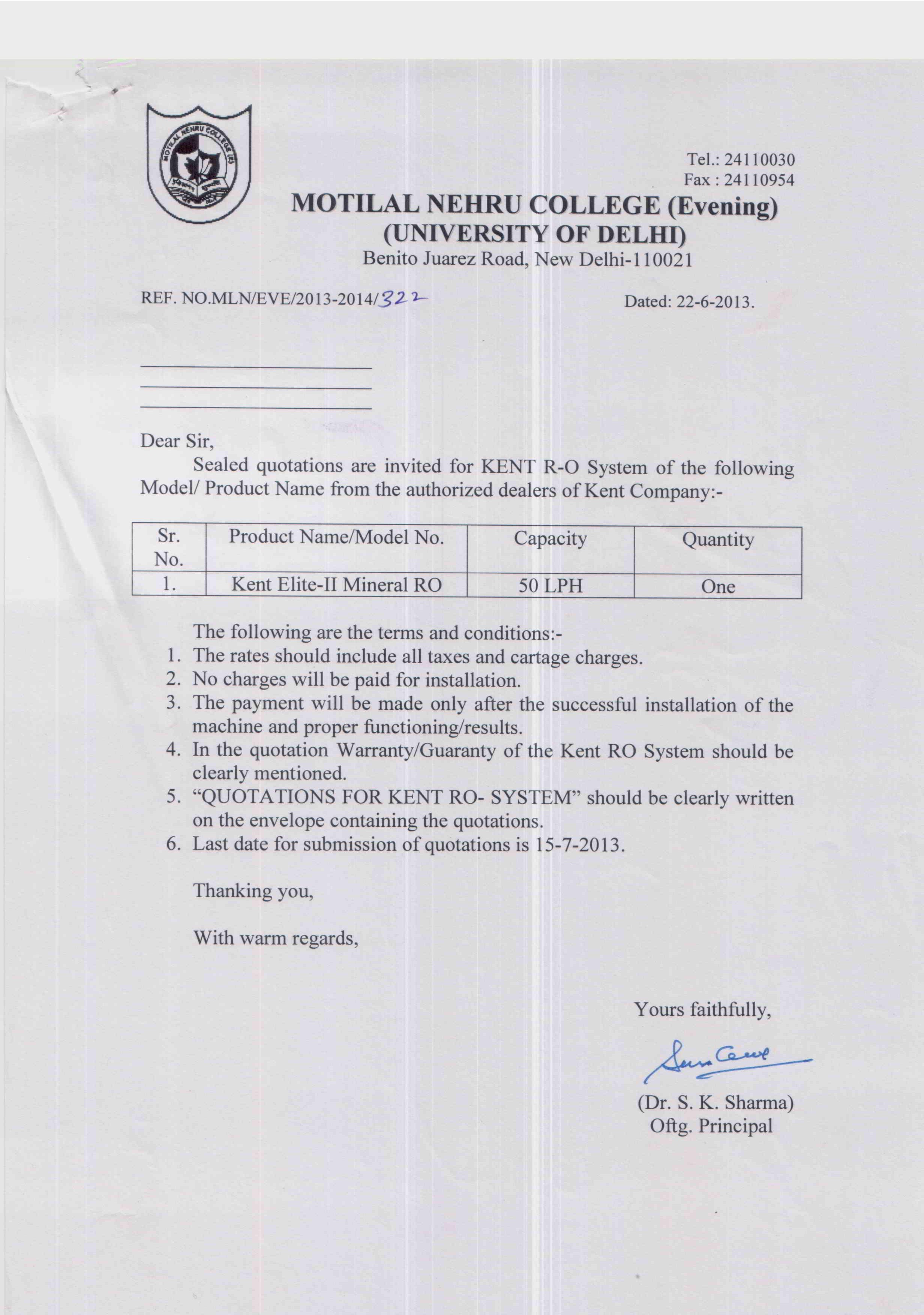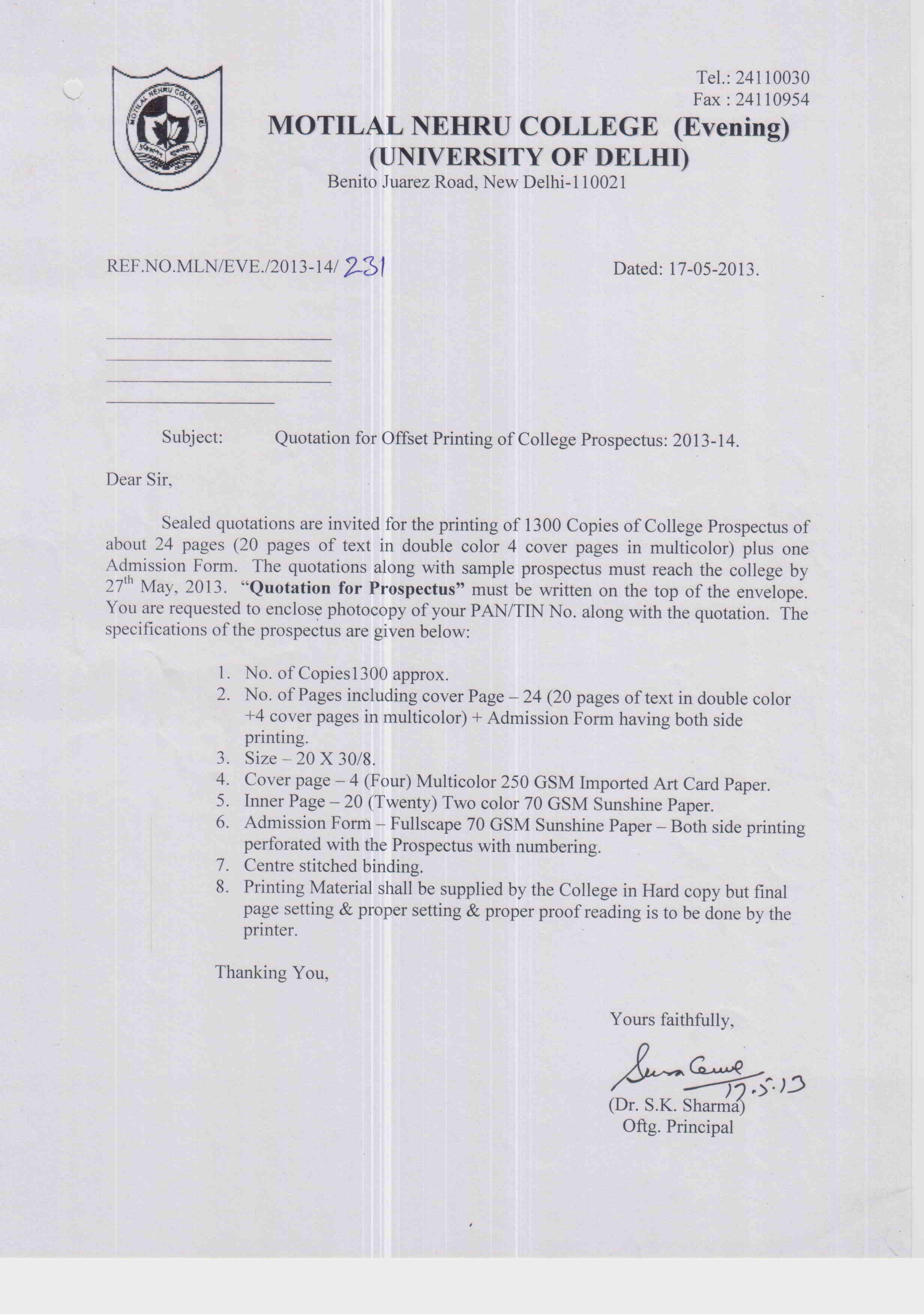 Tender Notice regarding Printing of College Prospectus 2013-14.