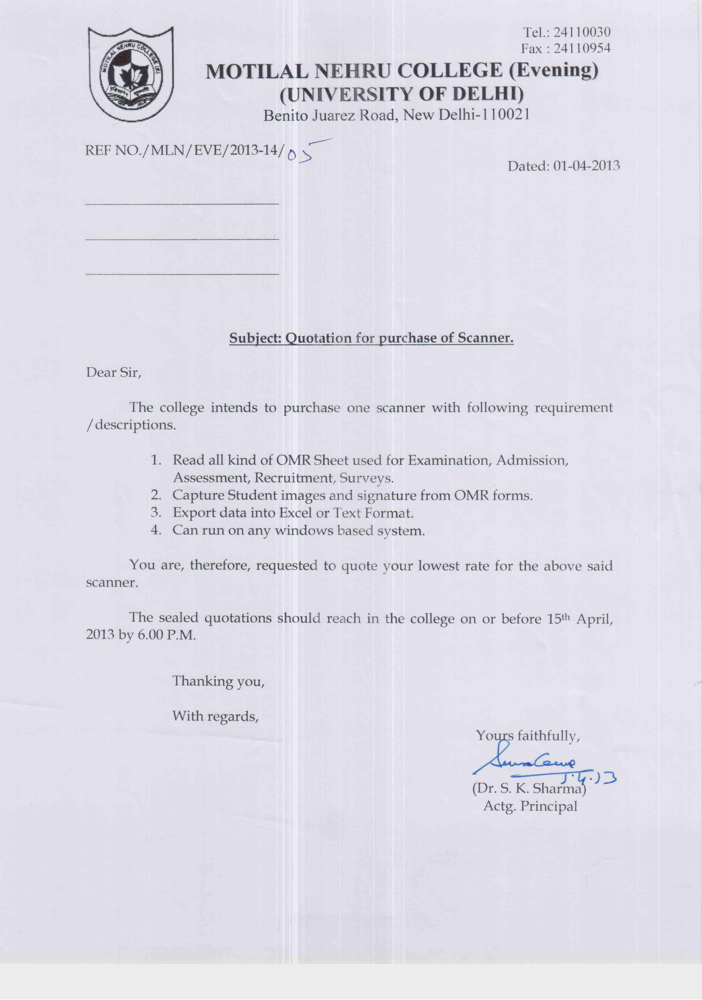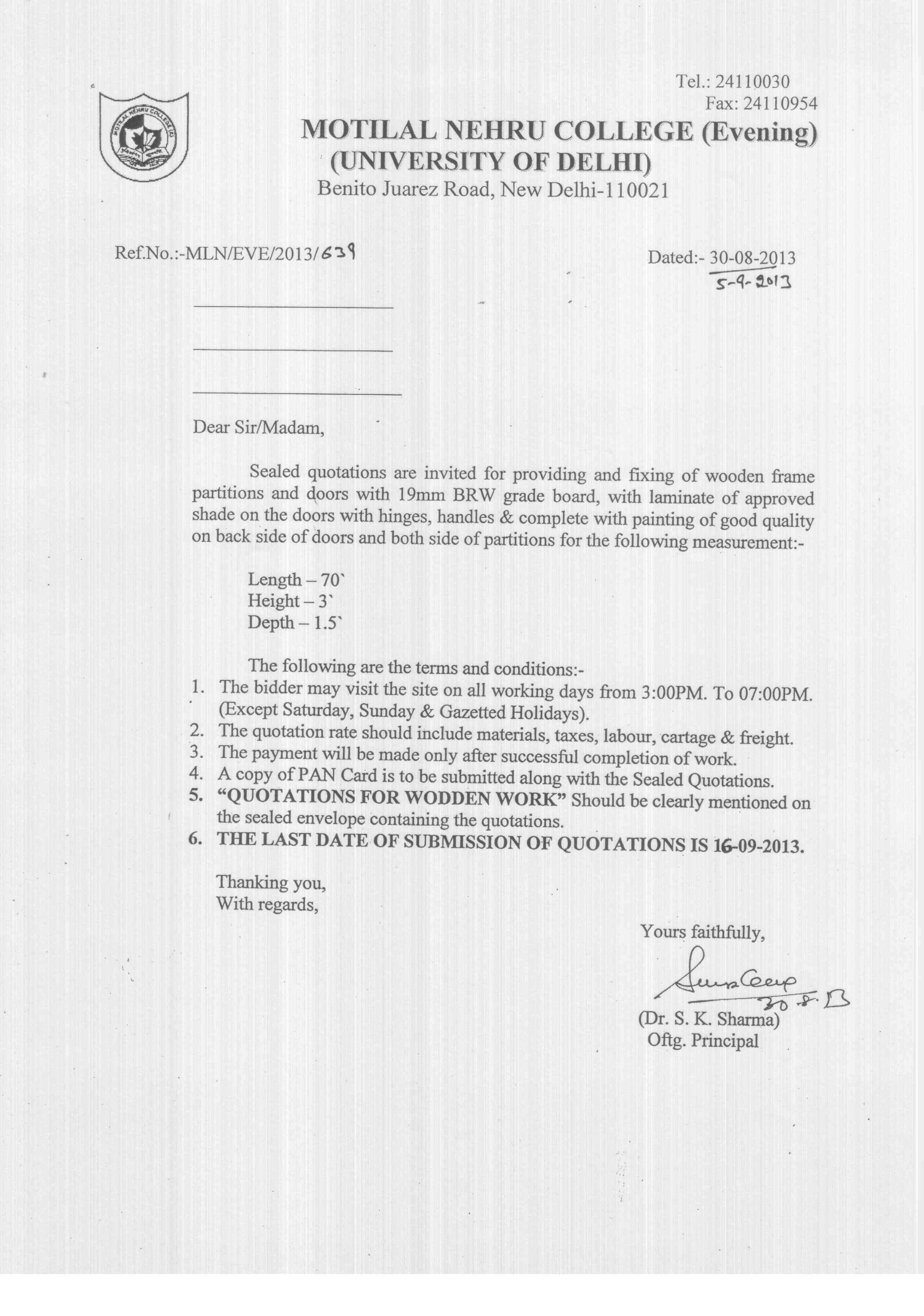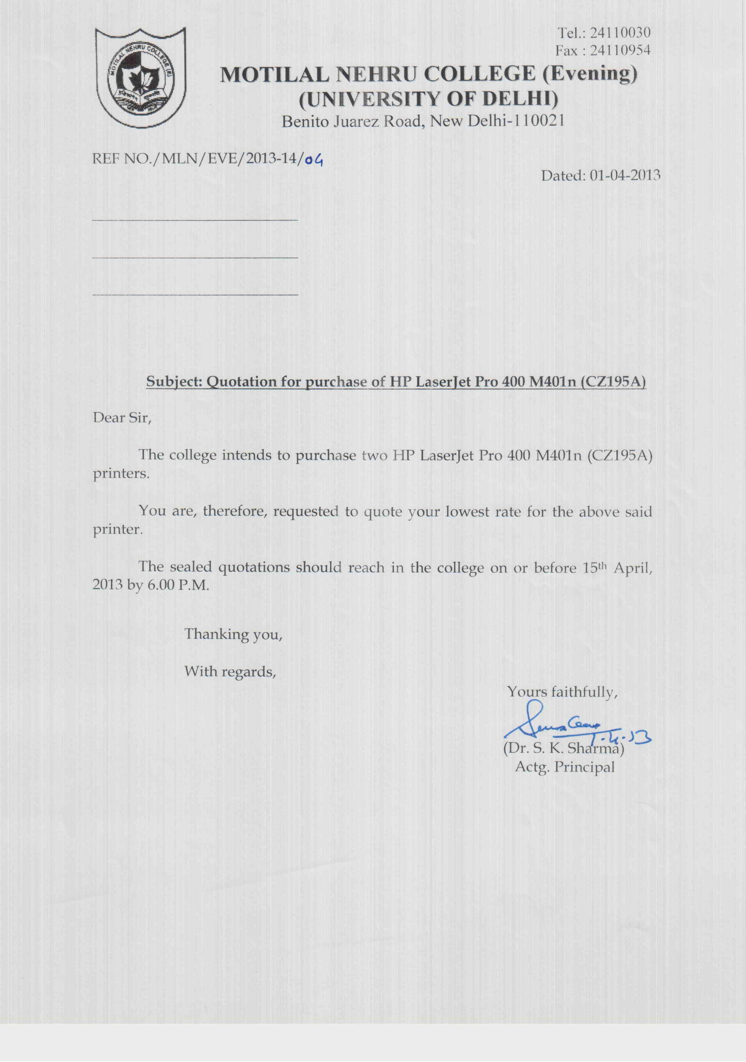 Tender Notice regarding Printing of College Prospectus 2013-14.