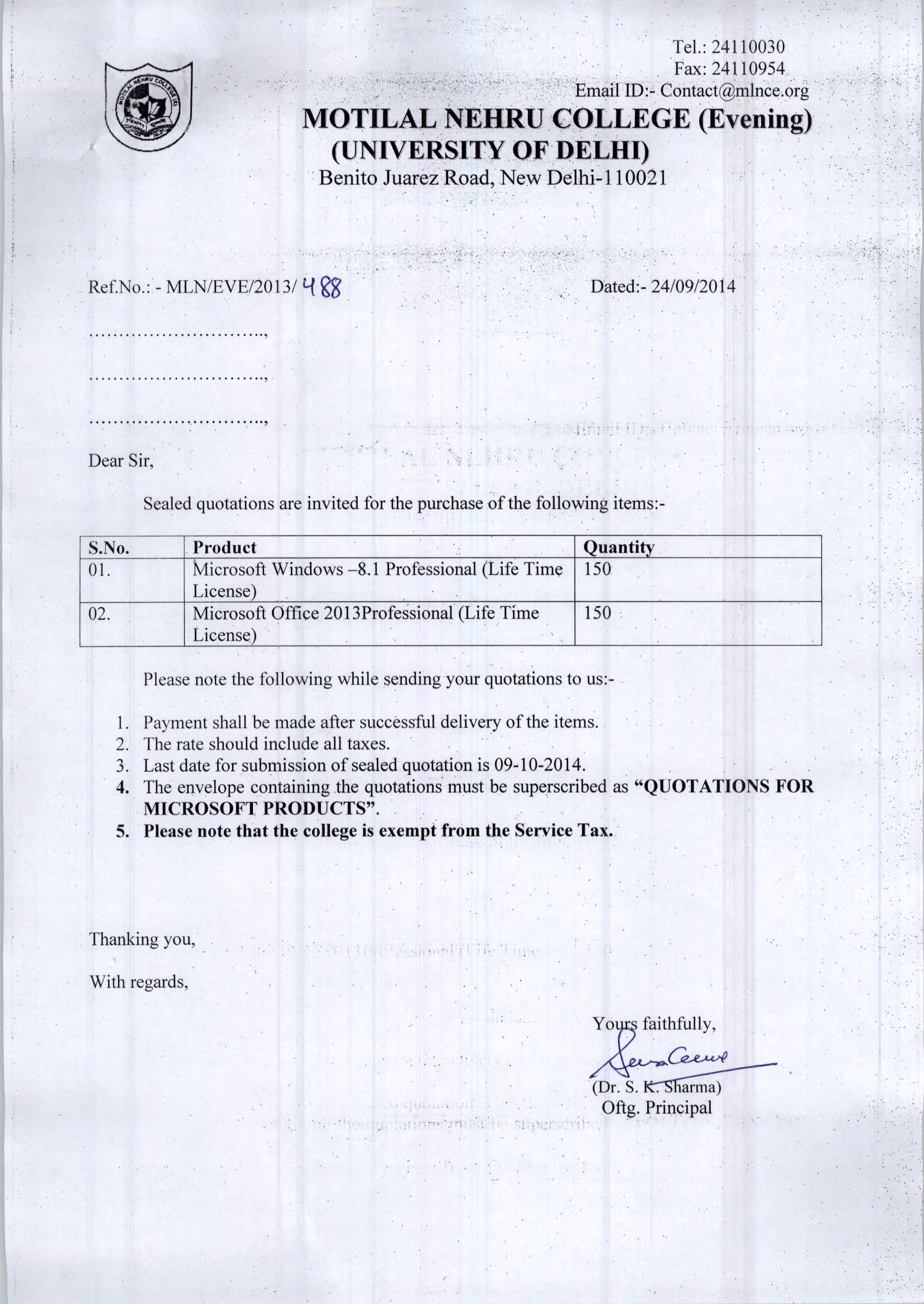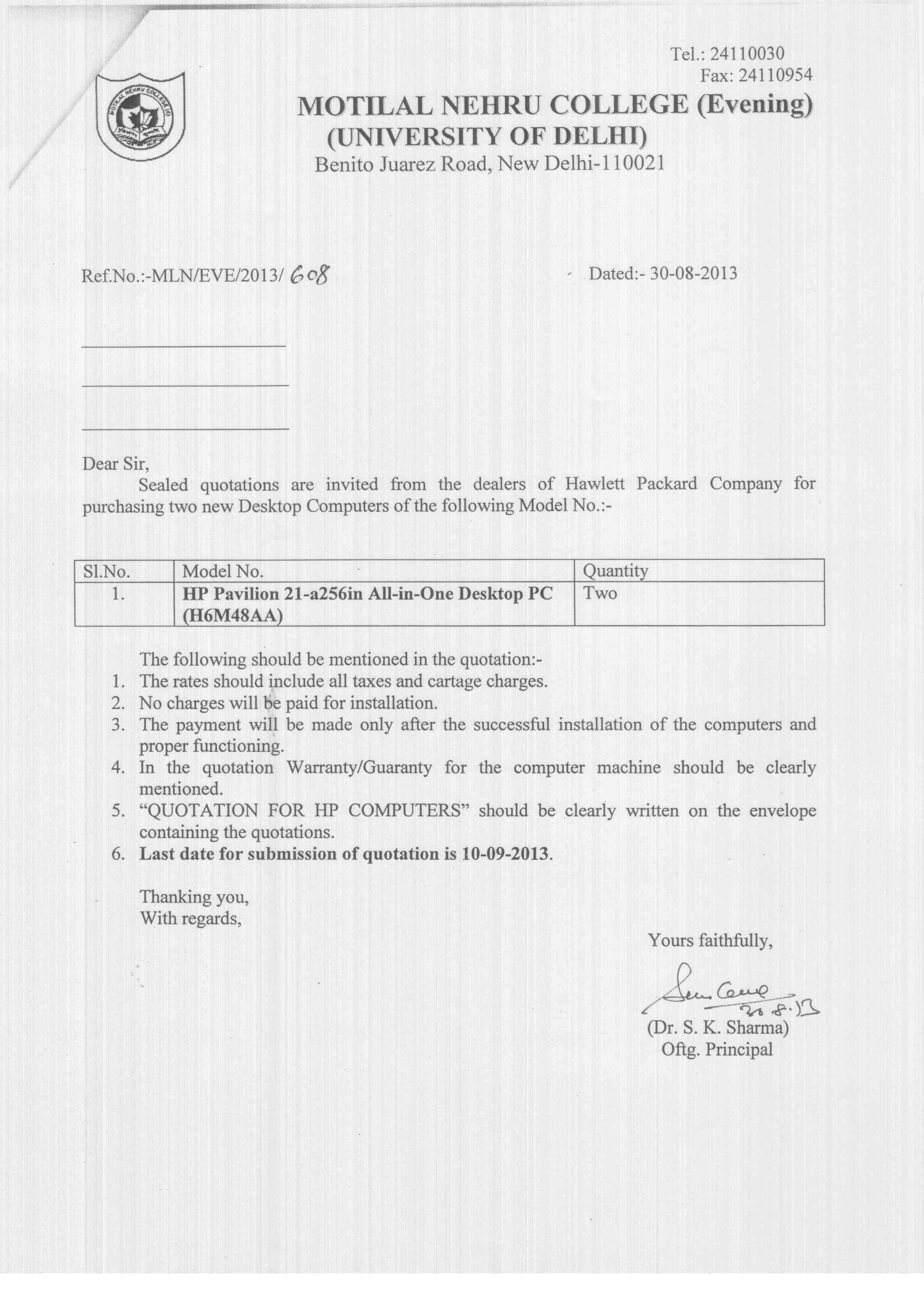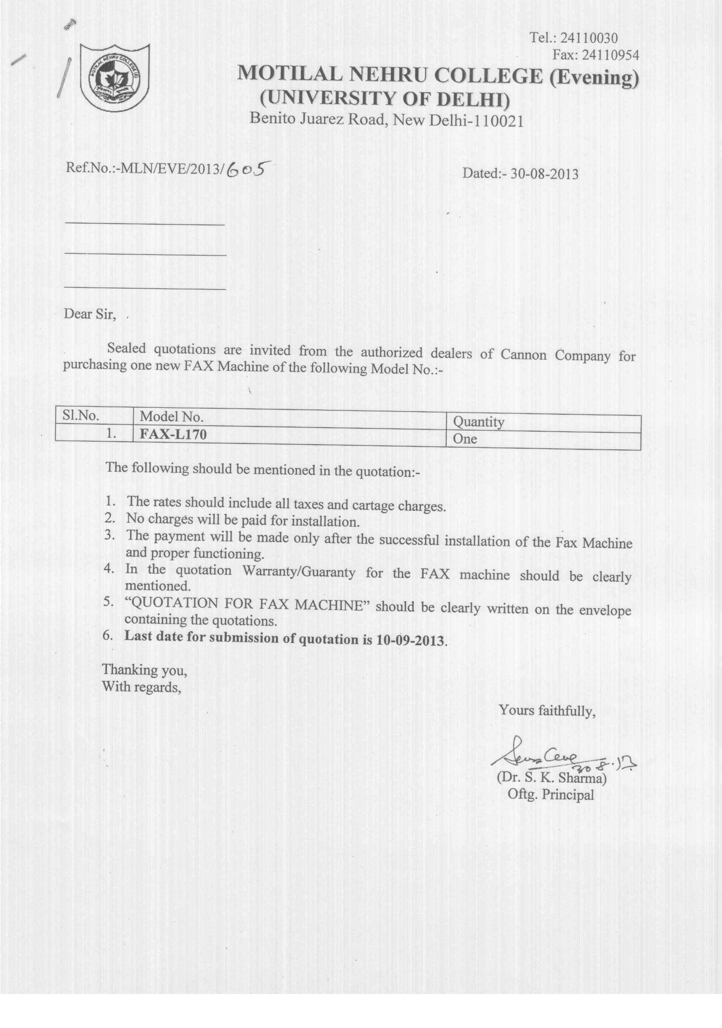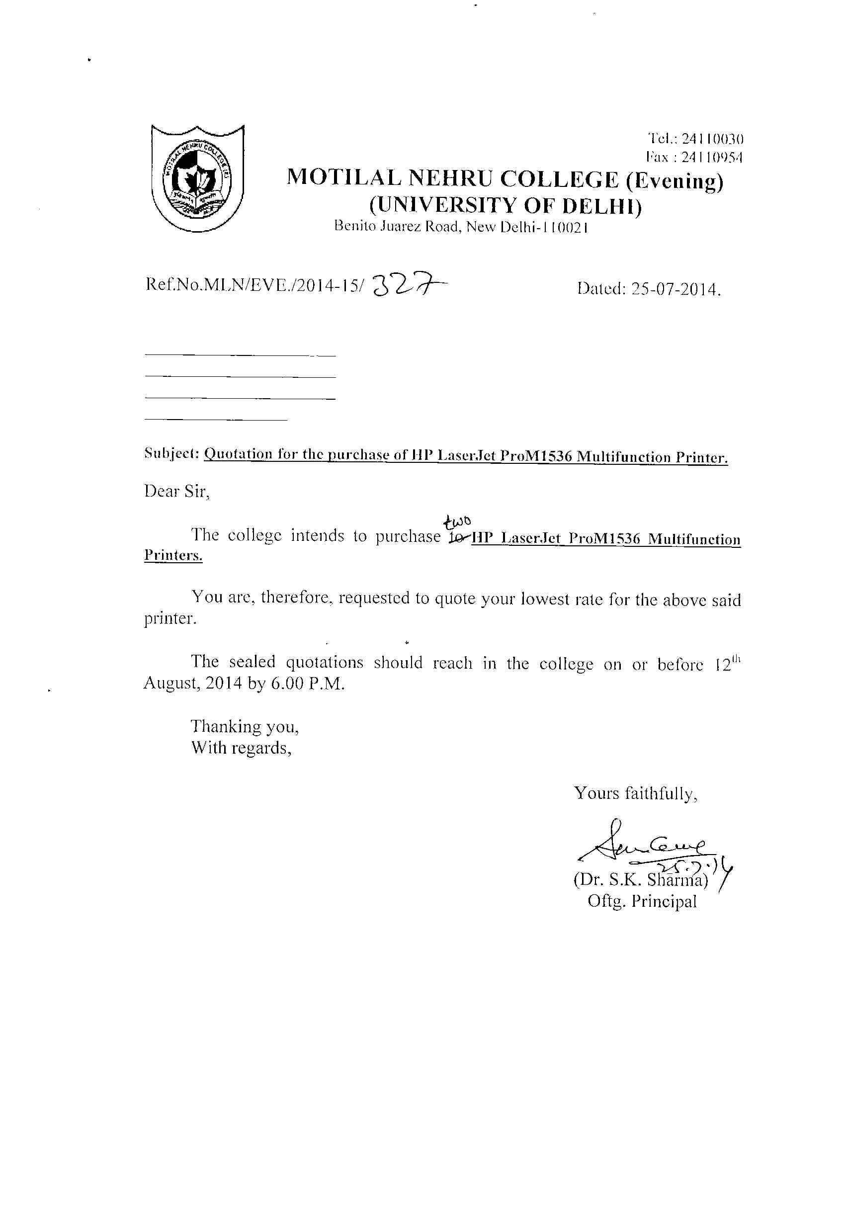Tender Notice regarding Printing of College Prospectus 2013-14.