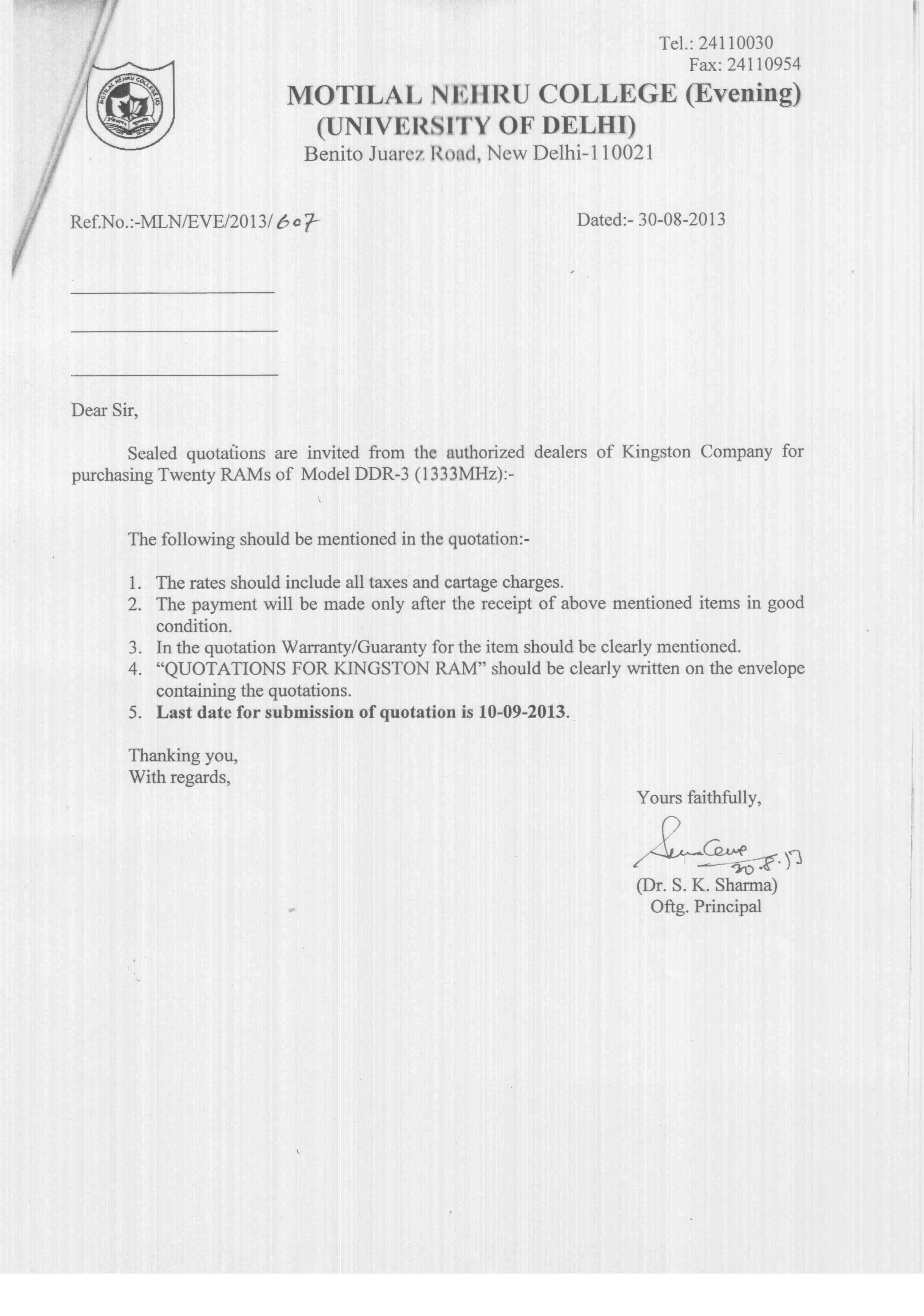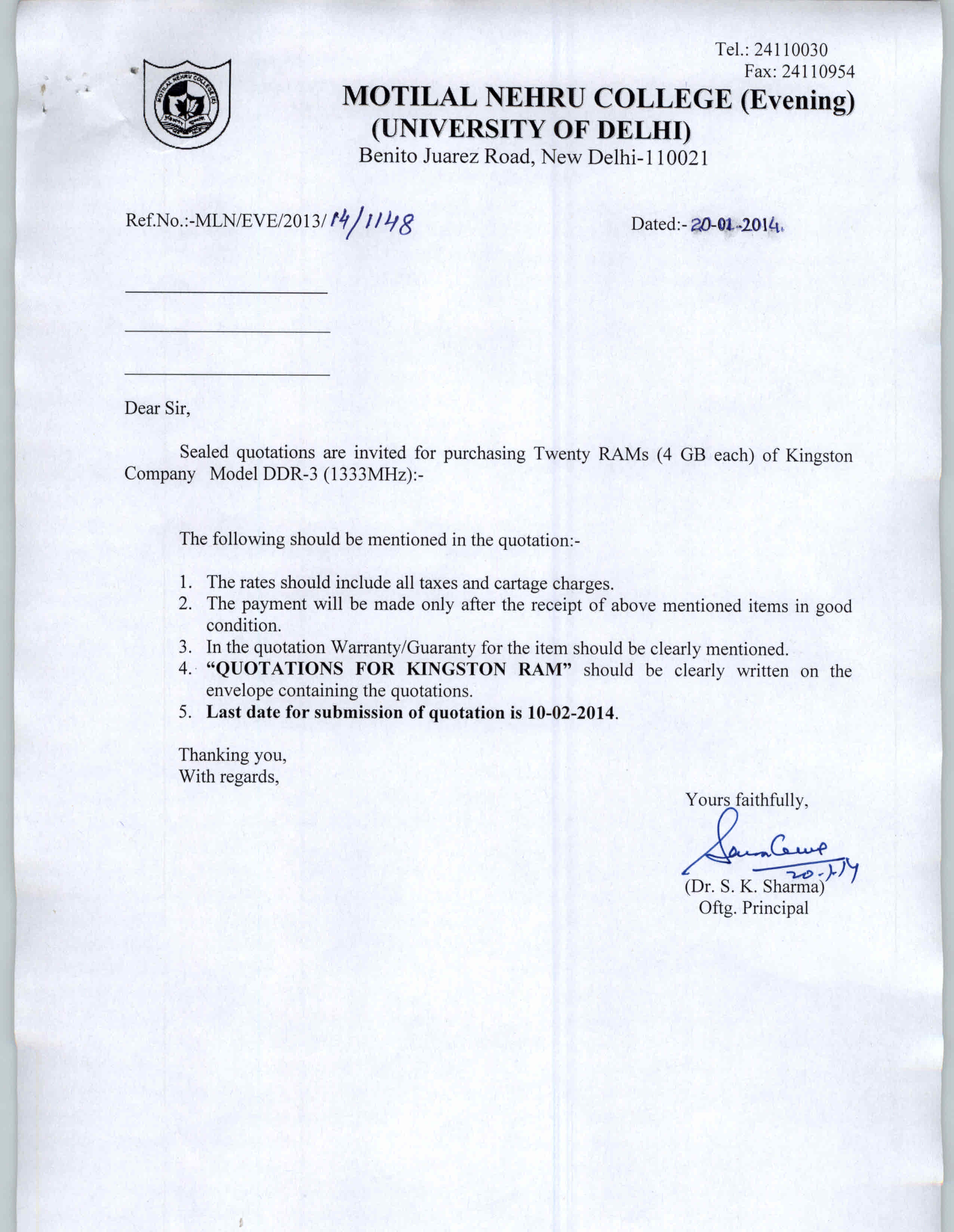 Tender Notice regarding Purchase of Kingston RAM’s.