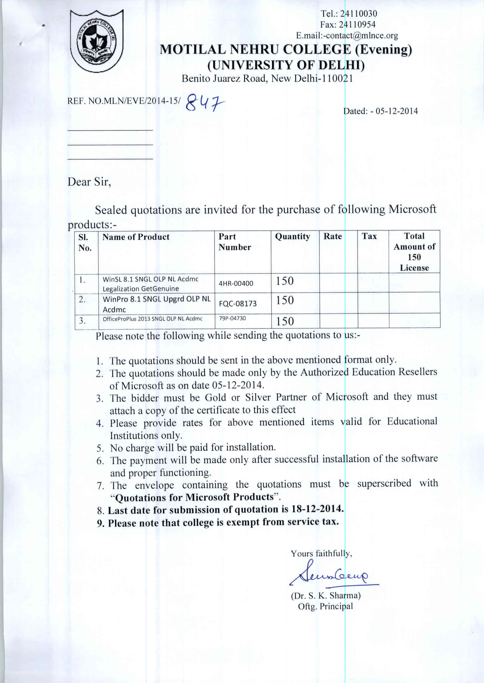 Last Date of Submission for Quotation of Outsourcing of Non-Teaching Staff
