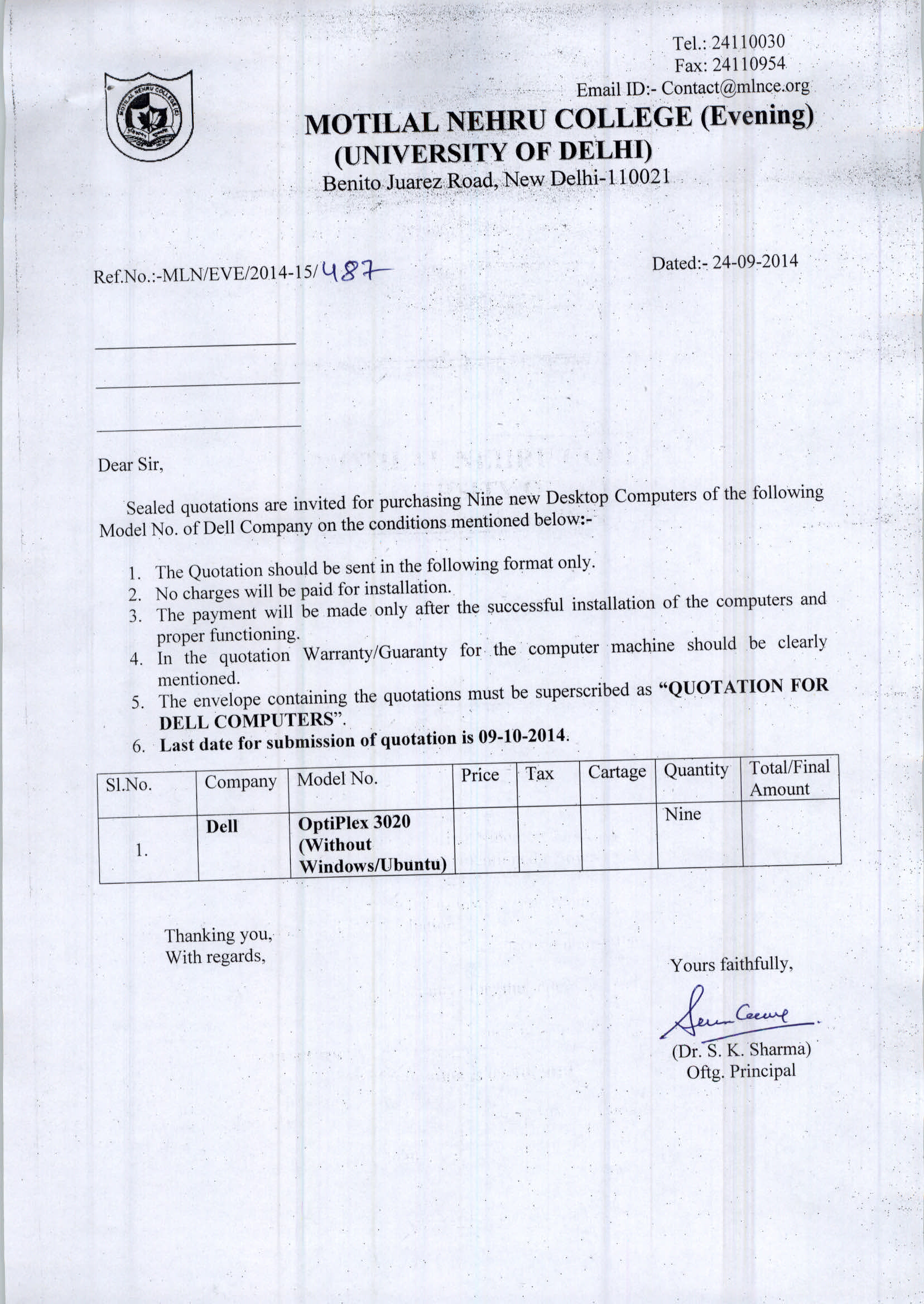 Tender Notice regarding Purchase of Dell Computers with Specification
